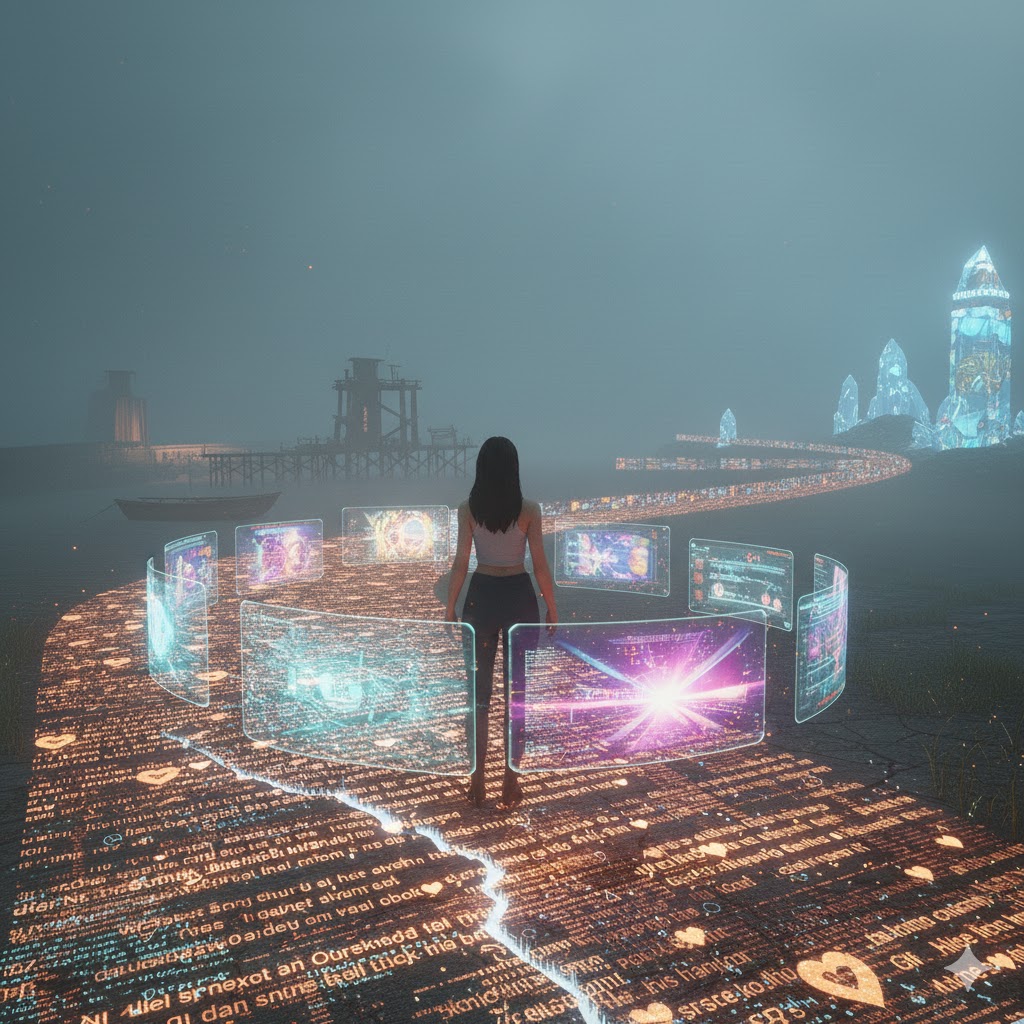 “Quanto spingermi oltre?” è la domanda che urla, mentre il codice binario dei corsi si fa storia. Hai cinque anni di disciplina, non sei più l’incerta fanciulla, ma chi crea, chi scrive, chi forgia la sua memoria.