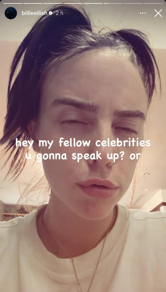 Di recente, le storie Instagram di Billie Eilish hanno scosso il web. Non si è trattato di un nuovo singolo o di un cambio di look, ma di un’immagine diventata un vero e proprio caso socio-politico. La cantante si è ritratta con un volto deformato, accompagnato da una frase tagliente: “Hey my fellow celebrities u gonna speak up? or” (“Ehi, colleghi celebrità, avete intenzione di parlare? O…”).